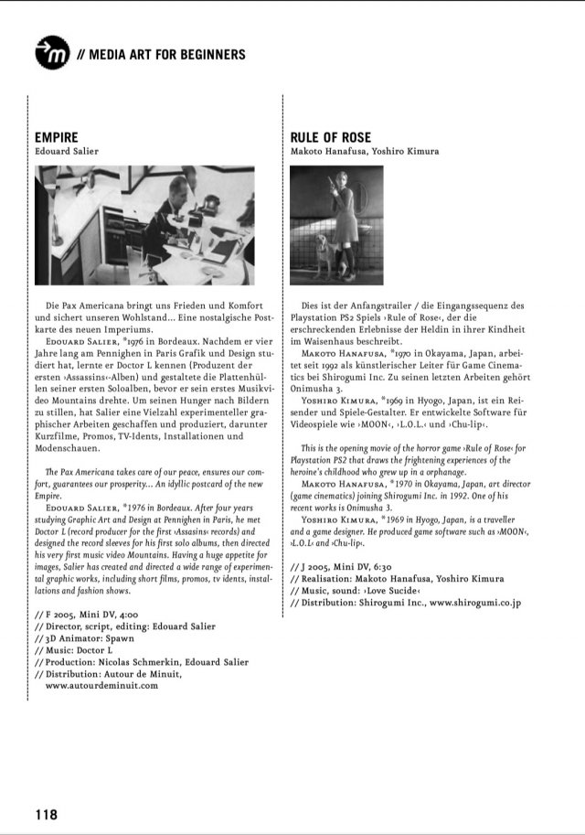ha pubblicato delle immagini nell'album Rule of Rose riguardante Rule of Rose