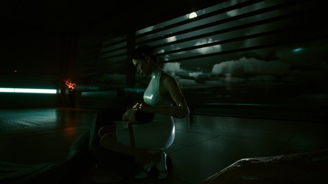 Screenshot di Cyberpunk 2077. Docked. Incredibile, penso sia uno degli screenshot più belli io abbia mai fatto. La scena è fantastica ![]()