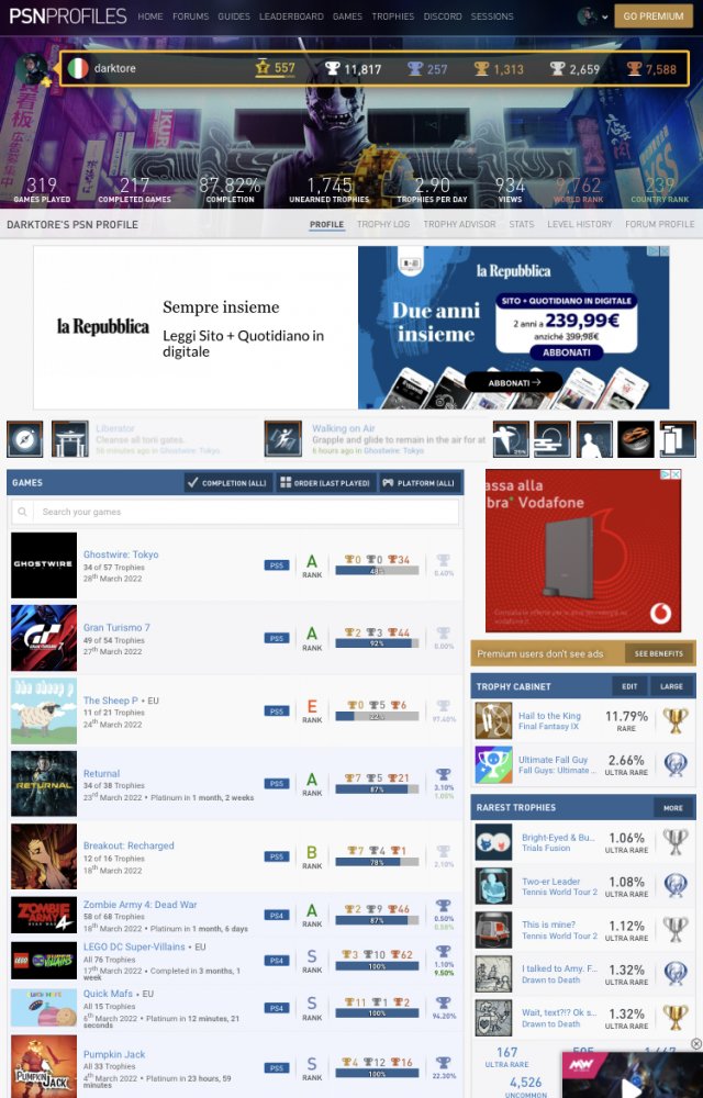 Quale è il vostro ultimo gioco nella lista dei trofei? Il mio è Ghostwire Tokyo è mi sta piacendo non poco