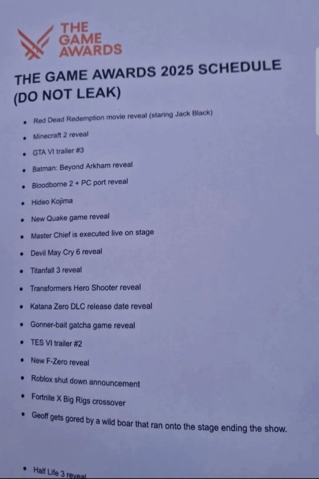 Leakata la scaletta dei TGA, hype.
