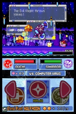 Kirby è una palla con abilità strabilianti – salta, vola e, soprattutto, mangia. Il nostro piccolo amico ingoia cibo e nemici con un tale gusto che farebbe concorrenza a una squadra di football affamata davanti a un buffet in cui ci si può servire a volontà. Gli servono oggetti di cibo normale per conservare la resistenza, ma c'è un'altra funzione speciale che consente all'educato Kirby di trasformarsi in un'intera varietà di personaggi diversi. Ogni volta che Kirby ingoia un nemico e colpisce il pulsante in basso della croce direzionale sul controller, s'impadronisce delle abilità del nemico che ha ingoiato.