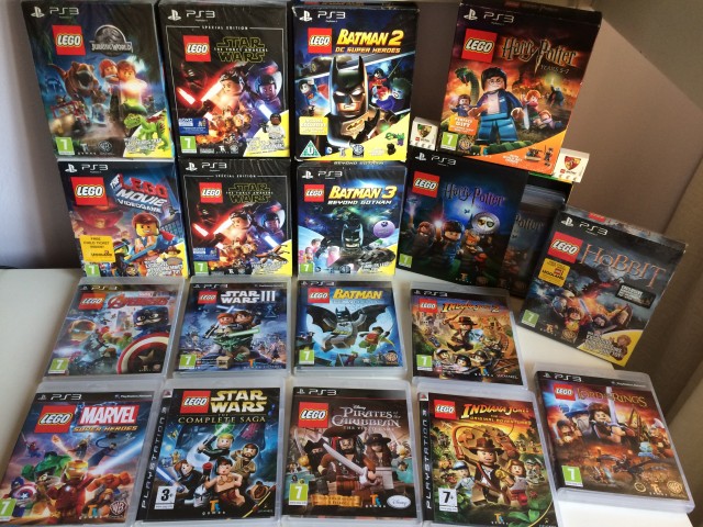 Set LEGO PS3 PAL quasi completo, mancano Rock Band e Dimensions. Quelli in verticale sono limited / special / pseudo-collector.
