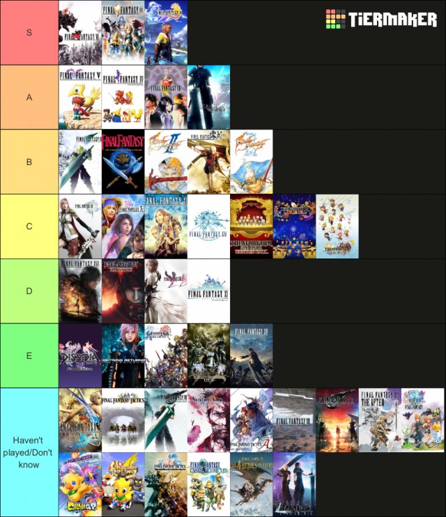 Ecco anche me. Ho beccato una tier list super completa, ma vabbè. Molto spin off non li ho giocati, ma spero di riuscire a recuperare quanto prima Tactics. È l’unico a cui tengo di quelli che non ho giocato!