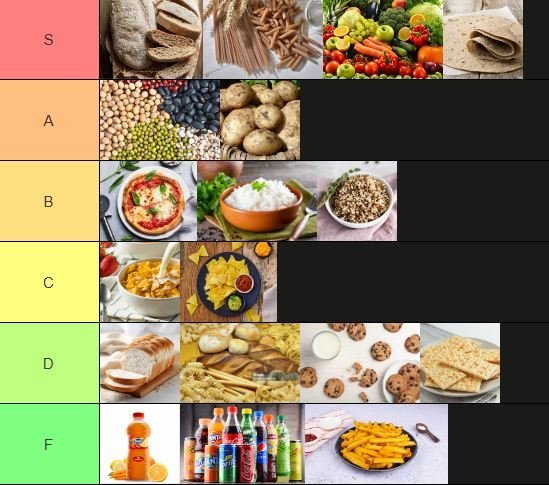 Tier list carboidrati. Non sono un nutrizionista, non prendere come oro colato questa tier list, sono solo un'appassionato di alimentazione.