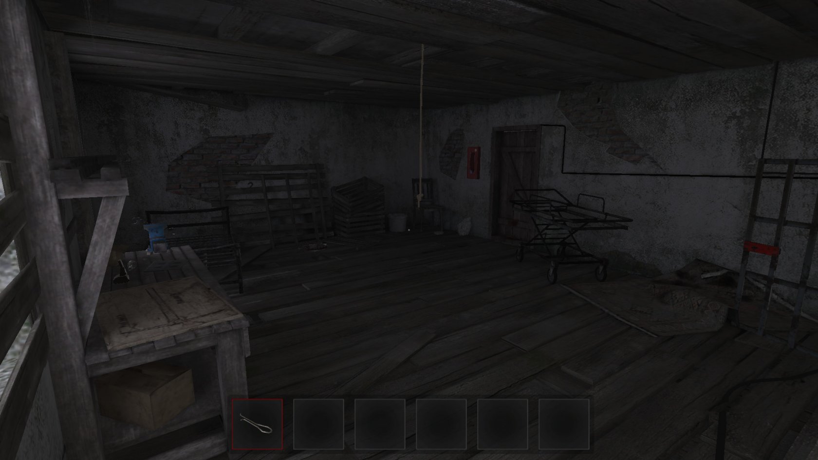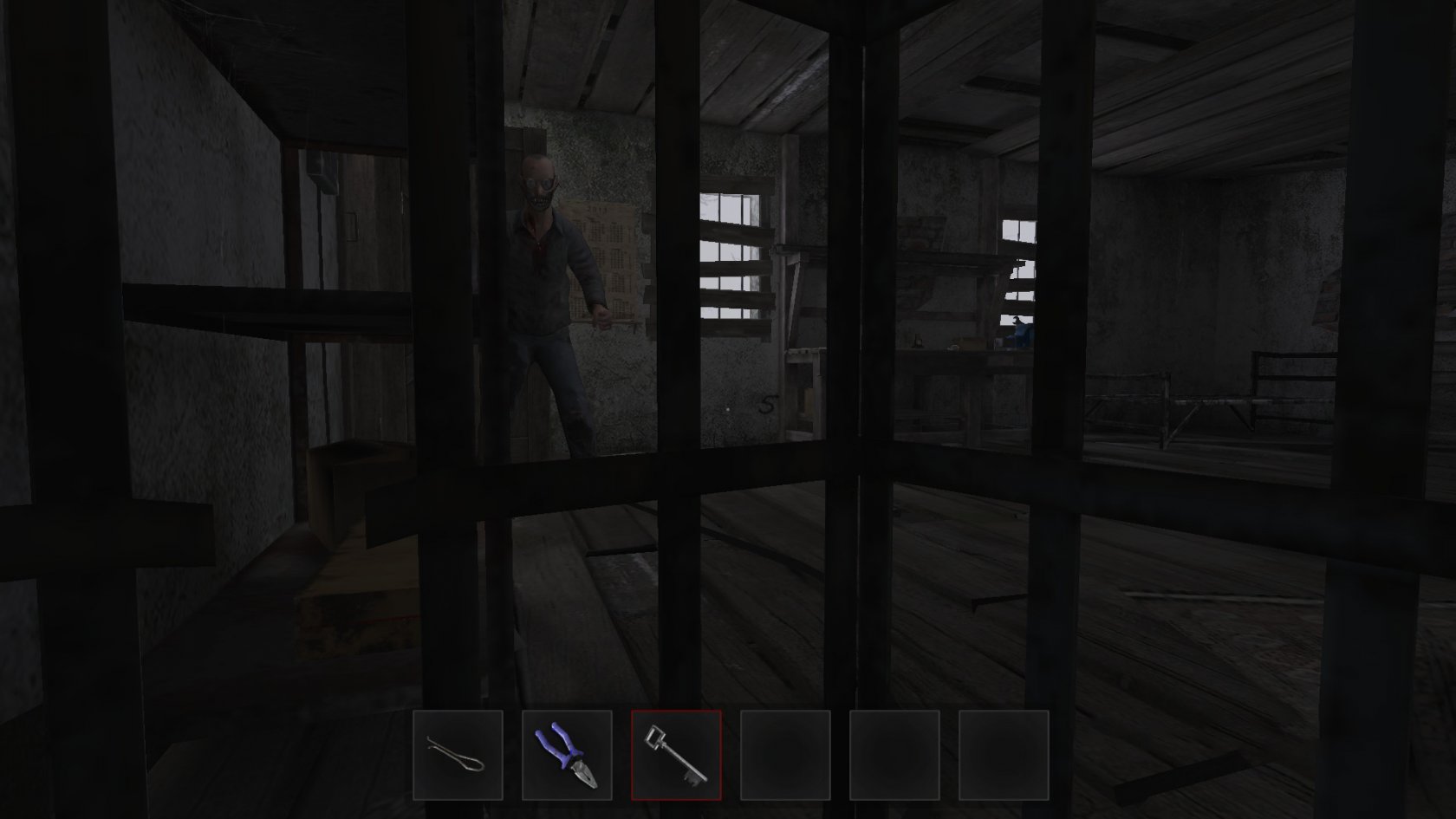 You play as a victim, you were caught by a maniac and put in a metal cage, in some old abandoned house located in the forest.