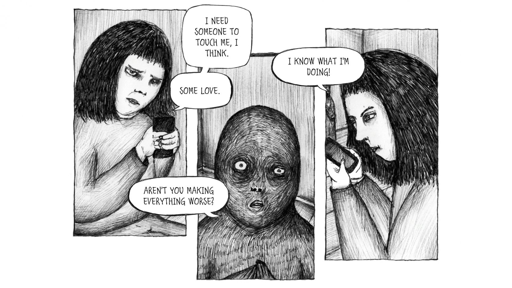 Stilstand is a dark and absurd interactive graphic novel. A personal and hand drawn tale about the high expectations and fragile emotional life that many young people struggle with.