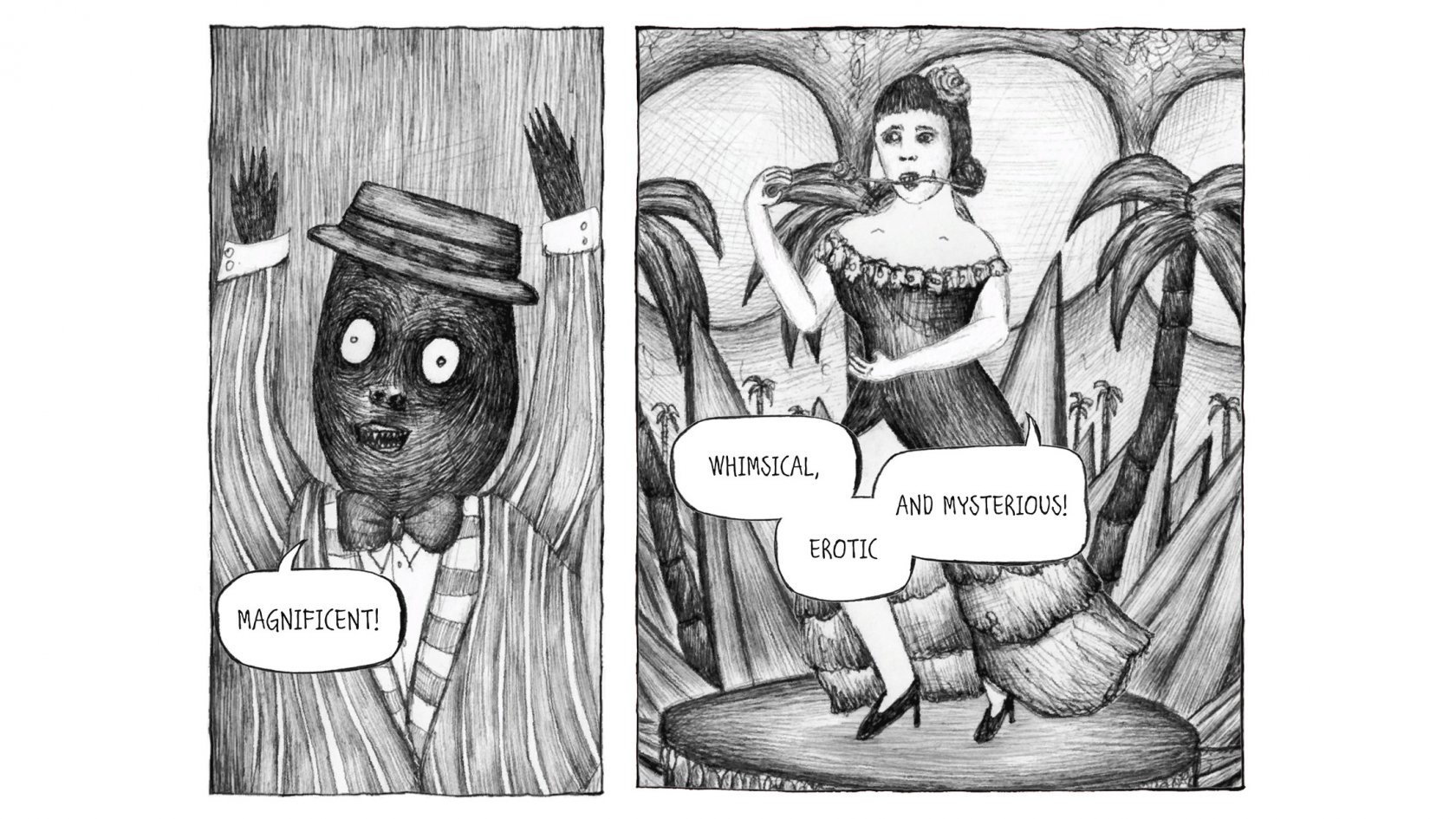 - Enjoy detailed and expressive black and white illustrations and a genre-bending cinematic soundtrack.