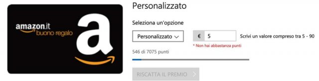 Oggi nuova sorpresa, hanno diminuito di poco i punti necessari per riscattare i buoni Amazon ma in compenso hanno aumentato quelli dei buoni Microsoft passando dai 1800 per 2€ a 2395.