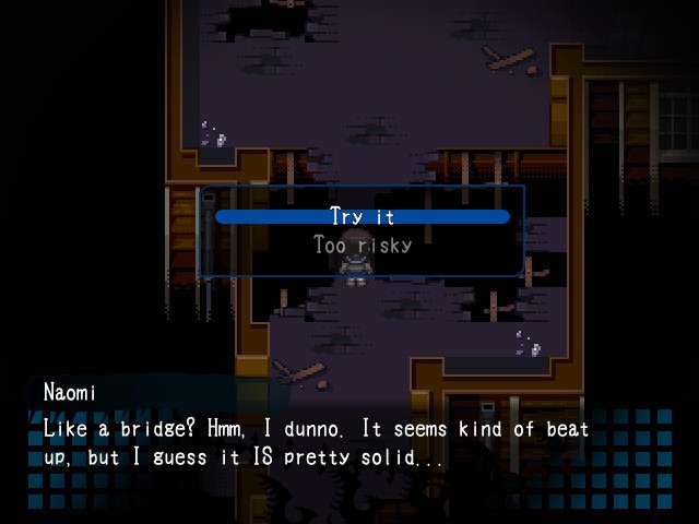 Modeled after the very first RPG Maker Corpse Party, the game's 16-bit-style 2D visuals help create an intentional disconnect that sparks the imagination, leading the player to envision far worse things than even the most powerful next-gen system could display.