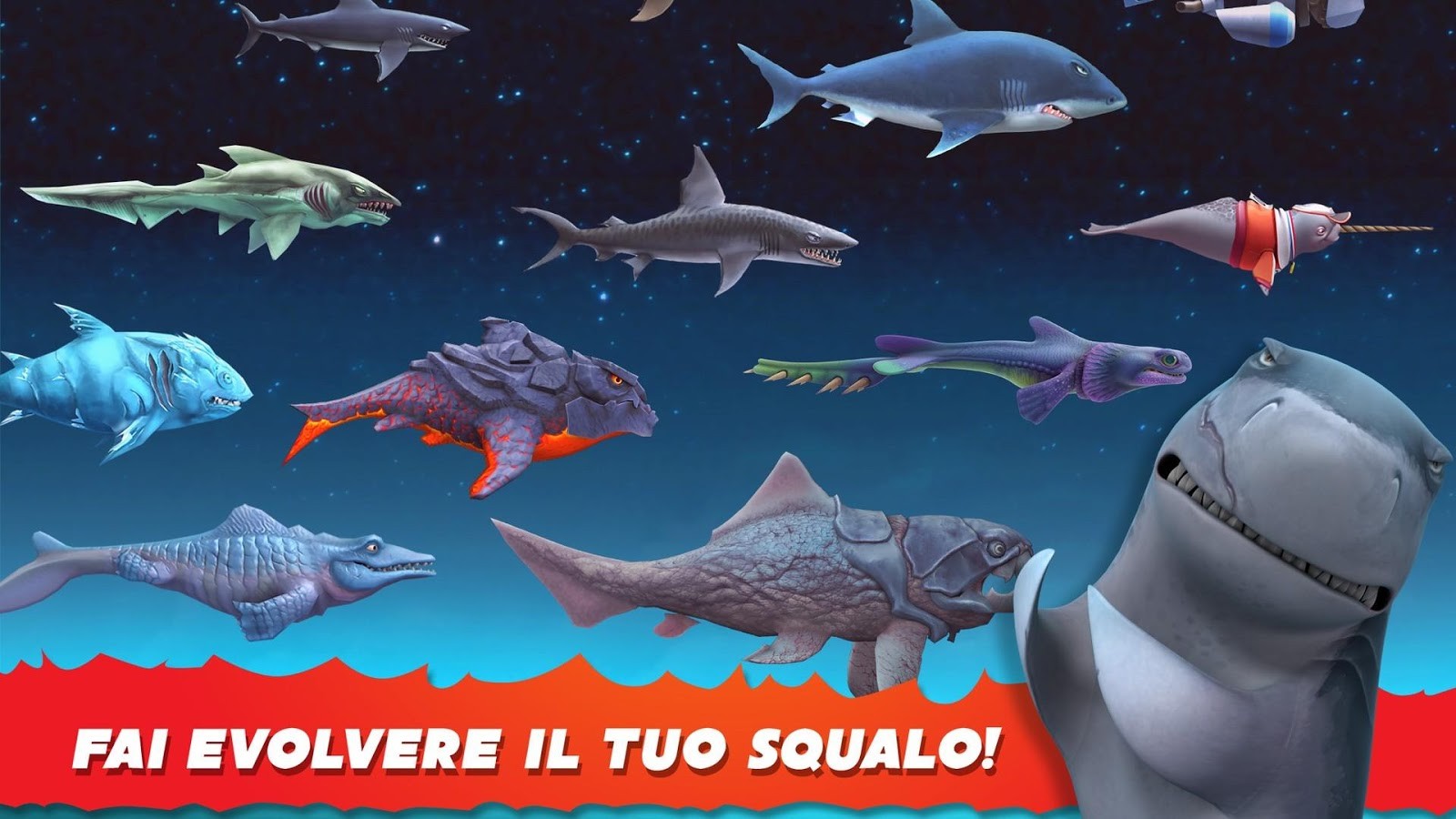 Raccogli e fai evolvere squali inconfondibili come lo Squalo bianco, il Pesce martello e il Megalodonte!