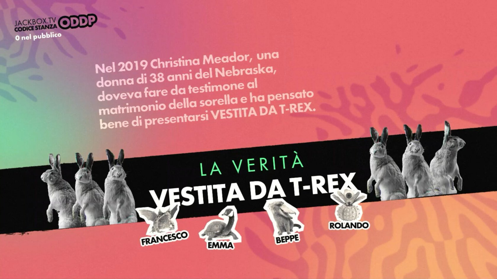 Ti presentiamo il nono capitolo dell'amatissima serie Party Pack! Che tu sia in compagnia dei tuoi amici, stia facendo un happy hour da remoto, stia cercando di rendere le vacanze meno imbarazzanti o che stia cercando il prossimo gioco da fare in streaming, The Jackbox Party Pack 9 è qui per ravvivare la situazione.