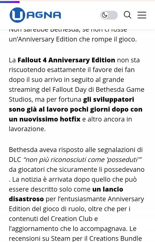 Salve a tutti. Stasera ho aggiornato Fallout 4 per la mia PS4. Con molta incazzatura, dopo il caricamento del mio ultimo salvataggio, mi compare un avviso che dice che mancano i dlc e alcune cose non ci saranno nel gioco. Ora... Io ho il season pass comprato anni fa. Ho riscaricato tutti i singoli dlc (6), ricarico la partita e siamo alle solite. Controllo dal gioco gli add on e mi dice che non sono installati. Che cavolo devo fare??? Qualcun altro con il mio problema? Cioè butto alle ortiche anni di gioco? Accidenti a me e a quando ho aggiornato!