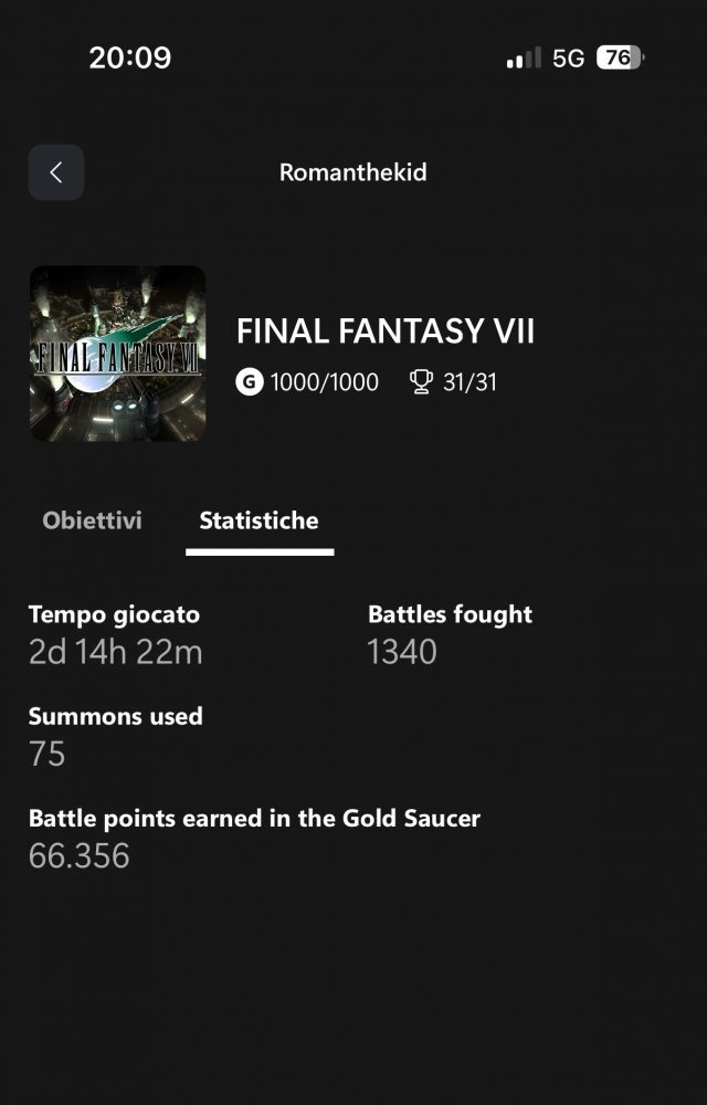 Dopo anni sono riuscito a farmi una run completa, in solitaria, di Final Fantasy VII. Nel corso della mia vita l'ho giocato parecchie volte, ma all'epoca fu con compagni di classe o amici. Un paio di volte mi prestarono la copia, ma mi bloccavo sempre perché tanto sapevo già l'andazzo del gioco e perdevo in fretta l'interesse. Ma quest'anno era quello giusto per riprendere in mano il gioco, e in questo caso ho approfittato della versione per Xbox che stava a pochi euro.
