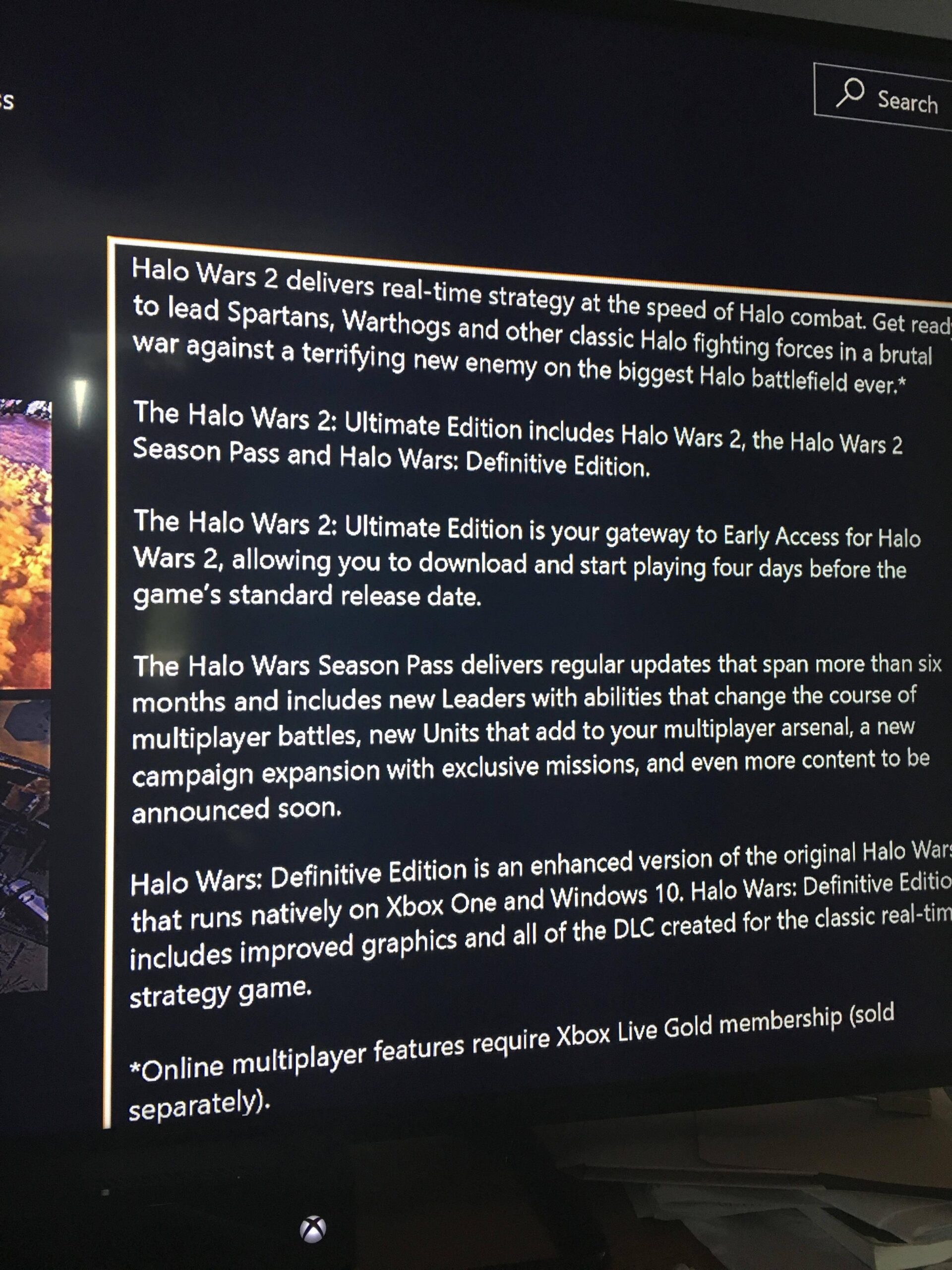 Durante la conferenza Microsoft è arrivato l'annuncio della remastered del primo capitolo di Halo Wars. Il titolo, chiamato Halo Wars: Definitive Edition, sarà distribuito insieme ad Halo Wars 2: Ultimate Edition che comprenderà anche il Season Pass. Inoltre sarà anche un lascia passare per l'Early Access per Halo Wars 2, che permetterà di scaricare e giocare quattro giorni prima della data ufficiale di rilascio del gioco.