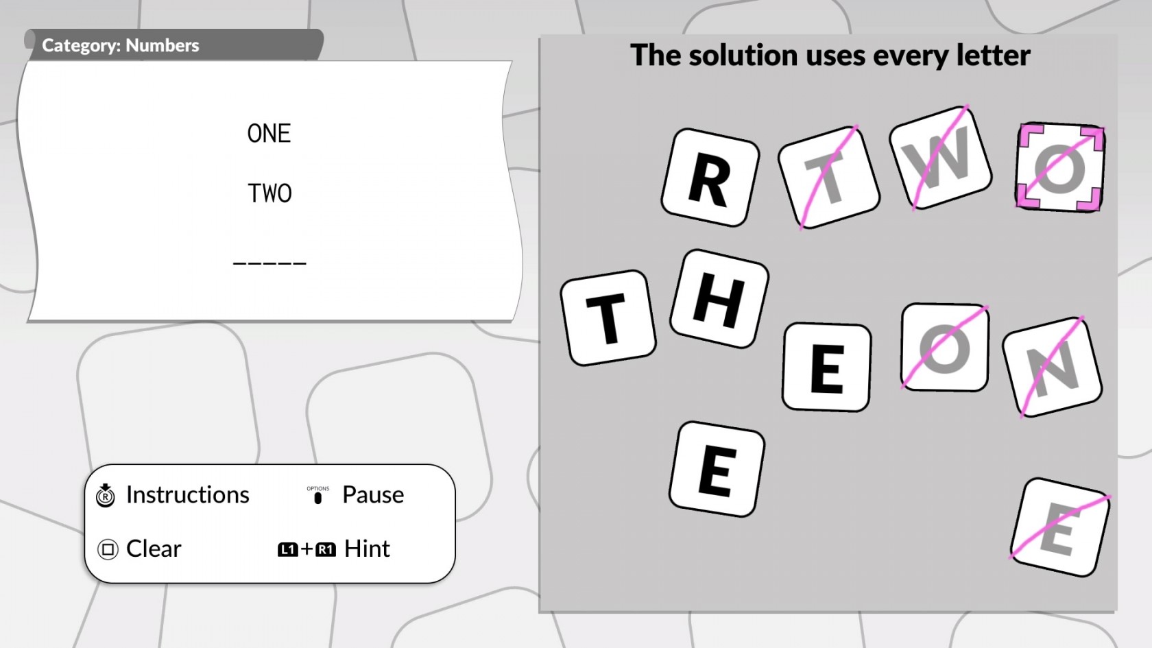 Stressante perché, non solo per l'assenza dell'italiano, ci sarà da giocare teoricamente “a incastro”, come fosse un Tetris delle parole, siccome non tutte, seppur di senso compiuto, verranno accettate dal gioco, magari perché le lettere utilizzate serviranno per una delle altre due parole. Il tutto si fa, insomma, più complicato e meno intuitivo del previsto, ma proprio per questo il gioco ci viene incontro, consentendoci di chiedere tre aiuti per ogni partita che andranno a svelare la prima lettera di ogni parola. Non troppo consistente, ma buono per farsi un'idea iniziale.