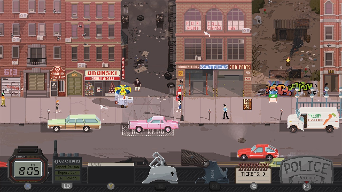 Il gameplay di Beat Cop riflette la trama di gioco. Nei panni di Kelly dovremo pattugliare il quartiere svolgendo i compiti base della polizia, come ad esempio multare e far rimuovere le auto in sosta vietata oppure fermare i taccheggiatori. Le varie tipologie di crimine verranno introdotte gradualmente, partendo dalle semplici multe a veicoli con un parchimetro scaduto oppure parcheggiate in zone non consentite per passare poi al controllo di gomme e fari, fino ad arrivare alle perquisizioni dei bagagliai di auto con targhe sospette. Lo stesso discorso vale per quello che riguarda le altre tipologie di reati. Dopo un paio di giorni ci verrà spiegato come bloccare ladri fuggiaschi, mentre superata la settimana dovremo cercare di gestire richieste giunte improvvisamente via radio, magari da portare a termine entro un tempo limite, proprio come accade nella vita reale.