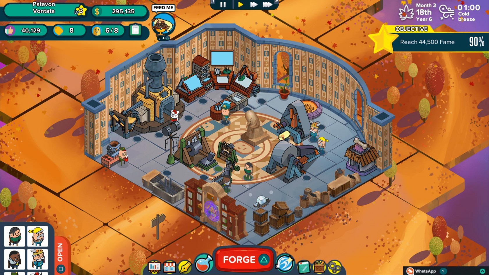 Durante il nostro percorso lavorativo, troveremo tanti personaggi buffi e parodiaci di alcune delle più famose icone videoludiche, sportive e del cinema, che potremo far unire a noi per aiutarci nella missione di soddisfare l'esigenze belliche degli eroi del reame. Ovviamente, come qualsiasi lavoratore, anche le nostre patate forgiatrici vorranno essere retribuite, avere diritto al riposo e, ogni tanto, a una vacanza. Questo andrà solo a giovare il nostro rapporto con loro, rendendo il personaggio di turno molto più propenso al lavorare al suo ritorno, velocizzando così lo sviluppo di nuove armi e aggiungendo punti bonus al punteggio finale dell'armamento.