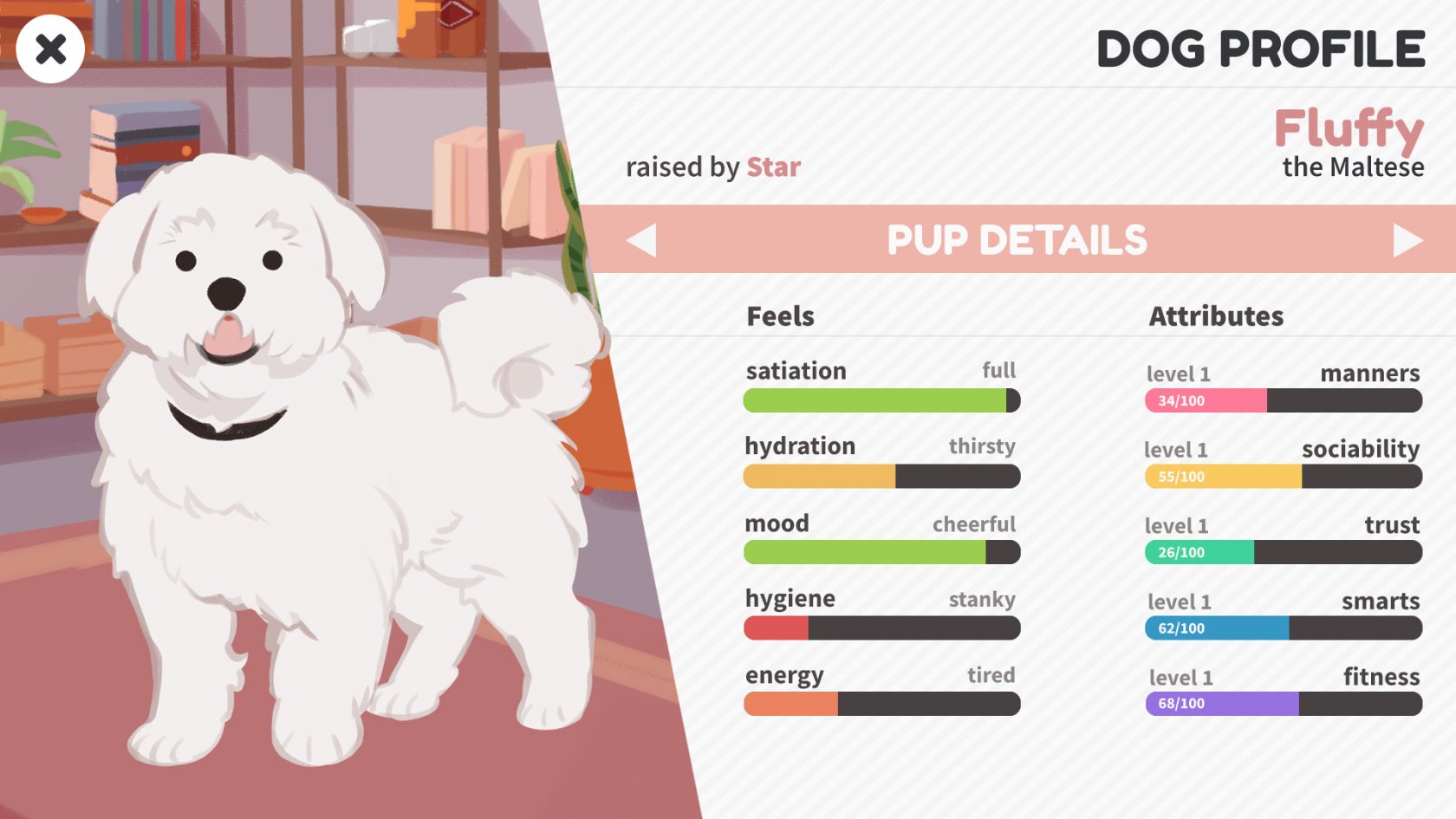 L'altra parte importante del gioco è l'interazione con il cane che avremo scelto di accudire: dovremo occuparcene secondo tutti i punti di vista, selezionando per ogni settimana le attività da fare. Queste attività aumenteranno delle caratteristiche del nostro cane come l'intelligenza, le buone maniere, la resistenza fisica, ecc… Dopo aver selezionato tutte le attività della settimana, il tempo scorrerà in fretta e questo è un ottimo elemento per velocizzare le attività senza concentrarsi su altre cose (soprattutto per chi preferisce l'elemento romance). In seguito allo scorrimento settimanale, sarà possibile tornare a interagire con il nostro animale domestico curandolo nei minimi dettagli, dalla pulizia dei denti fino al lavaggio del pelo. Interessante aggiunta, nonostante troviamo che alcuni comandi siano un po' troppo macchinosi a livello di esecuzione.