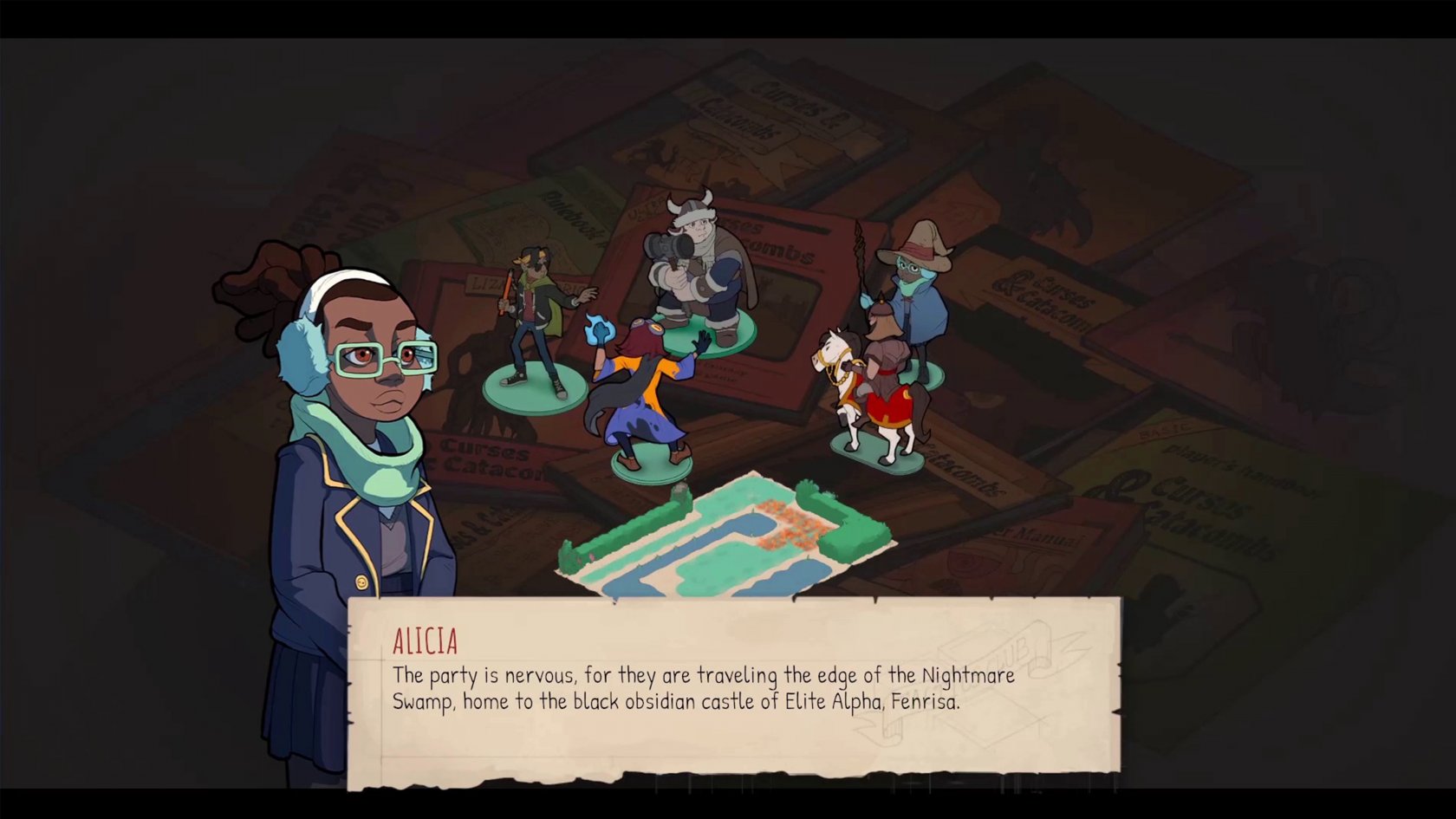 Le avventure personali di Alicia si intrecceranno con il suo passatempo al Tactics Club, il gioco di ruolo Curses and Catacombs (molto simile al celebre Dungeons & Dragons). Così alterneremo le parti di visual novel con dei combattimenti in classico stile gioco di ruolo a turni, in cui gli alter ego dei ragazzi del club saranno impegnati in epiche battaglie contro mostri sanguinari. A dire il vero, le battaglie saranno molto semplici, quasi scontate, per chi è già avvezzo a questo tipo di scontri. Chi si avvicina per la prima volta o non ha molta esperienza a riguardo, troverà un ottimo modo per prendere confidenza con i videogiochi di combattimenti tattici. Le battaglie non saranno mai frustranti o punitive ma anzi, regaleranno la soddisfazione di trionfare agilmente.