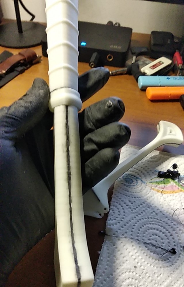 Colla a caldo, apportata in abbondanza, rifinita col taglierino e poi appiattita con carta vetrata. Mi darebbe un po' fastidio che si vedessero le giunture, quindi mi sono arrangiato così