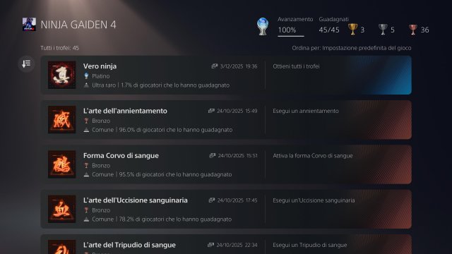 Dopo oltre dieci anni di assenza, ritorna una delle saghe più iconiche del genere action in terza persona, con molti cambiamenti (a cominciare dal protagonista) ma anche con conferme del passato. Pubblicato da Xbox GS con la collaborazione di Koei Tecmo, Ninja Gaiden 4 vede lo sviluppo affidato principalmente a Platinum Games con la supervisione di Team Ninja (la software house storica che ha dato lustro alla saga). Alla fine il prodotto che ne esce risulta un ottimo titolo, che guarda al passato si ma porta molte novità per ravvivare l'azione. Il gioco può essere affrontato in tre livelli di difficoltà intercambiabili in qualsiasi momento (facile, normale e difficile, mentre la quarta difficoltà maestro ninja si sblocca solo dopo il completamento della storia e questa una volta scelta è immutabile), infarcito di tantissime opzioni per personalizzarsi la partita al meglio (basti solo pensare alla selezione della distanza della telecamera e alla modfica del suo angolo...). La storia è collocata molti anni dopo il terzo capitolo e non ha allacci con esso, difatti i riferimenti (pochi) sono casomai alle origini con la minaccia del Drago Nero che incombe nuovamente. Trama a parte, protagonista della vicenda non è Ryu (comunque presente e giocabile strada facendo), ma Yakumo del clan del Corvo. Il ninja è dotato di un potere particolare (il fulcro sanguigno) che permette di trasformare le armi che usa col suo sangue, donandogli due forme, cioèla basilare e quella insanguinata che prende il nome di corvo del sangue (c'è una specifica barra di carica che regola e mitiga l'uso delle mosse in forma corvo del sangue). C'è poi anche una barra di frenesia che aumenta o decresce a seconda della prestazione bellica di Yakumo e quando arriva alla carica massima, permette (se attivata) di entrare in uno stato molto potente in cui si riesce con maggior facilità ad annientare i nemici o a caricare un vero e proprio super-colpo dai danni devastanti (anche contro i boss). A livello di combat system non c'è nulla da dire: il gioco ha una vastità di opzioni quasi sconcertante, dalle combo classiche di tasti azione, combo a terra o a mezz'aria, alla possibilità di concatenare movimenti circolari delle levette analogiche più i tasti, all'integrazione delle due forme dell'arma... per non parlare di schivate, salti, blocchi passivi, parate-risposte e contrattacchi (quest'ultimi non si fanno col tasto della parata bensì con quello degli attacchi leggero o pesante giusto un attimo prima del colpo nemico in arrivo). Ci sono ovviamente le mosse iconiche della saga: discesa di Izuna, Ghigliottina, tecnica finale (con tanto di messa a terra per caricare più velocemente il colpo), volo della rondine, lancio di shuriken per interrompere... La mobilità del personaggio è eccelsa, si va veloci come su una supercar. Fra l'altro questo concetto di velocità è mantenuto anche nelle numerose sezioni di platforming sparse nei livelli, tra rotaie dei treni e corse sui muri. Yakumo infatti avrà a disposizione un rampino per muoversi tra questi ostacoli e un aliante per cavalcare le correnti d'aria. Le sezioni col rampino mi sono piaciute, meno quelle con l'aliante (da notare che esistono i danni da caduta, ma nel menù opzioni si può annullare questo malus pena però l'impossibilità di ottenere alcuni trofei legati al platforming). Un plauso va fatto per la disposizione di default dei comandi del pad, che si vede che è stata fatta da gente che di action ne mastica fin dalla nascita. Il mio consiglio è di mantenere la disposizione base. A livello di progressione Yakumo potrà "ricaricare le pile" in appositi checkpoint (qui partirà un salvataggio automatico) dove potrà parlare a uno schermo con Umi, la hacker del clan, che gli fornirà una bottega dove comprare consumabili, accettare incarichi secondari (molto standard e classici, tipo collezziona 5 oggetti di quel tipo, elimina 20 guardie armate ecc...) oppure interagire con un corvo, che farà comparire il suo maestro Tyran il quale potrà insegnare nuove mosse a Yakumo (pagandole in monete ninja) o avviare una sessione di allenamento. Essenzialmente Yakumo avanzando fronteggerà svariati nemici a seconda delle aree (in alcune ci saranno delle vere e proprie ondate), per poi abbattere il boss di fine capitolo. Lungo il percorso principale si snodano vie secondarie e in alcune di queste si può accedere a dei portali per entrare nel "purgatorio", vale a dire una sessione di gioco che richiama le prove del coraggio del terzo capitolo, sfidando ondate di nemici (senza però intaccare il punteggio karma e la valutazione del capitolo). Visivamente a me è piaciuto lato estetico (nemici, armature, armi, animazioni dei colpi, magari qualche colore in meno a schermo non guastava durante gli scontri...), ma è chiaro che il lato tecnico non è al passo coi tempi, sebbene le prestazioni siano solide (cali di frame? Rallentamenti? Cosa sono?). La colonna sonora e le musiche non sono invadenti e fanno la loro onesta parte. A livello di difficoltà dipende l'approccio che uno cerca: secondo me Razor's Edge è molto più tosto, ma a sua volta questo l'ho trovato più difficile (a modalità difficile, quella che ho giocato per intero io) del primo e del secondo Sigma. In ogni caso consiglierei di approcciarlo la prima run a normale, più che altro perché le meccaniche nuove devono essere acquisite con molta pratica e farlo subito a difficile forse può causare un po' di frustrazione (che tuttavia io non ho avuto, pur essendo morto più di 700 volte). In conclusione è un titolo vivamente consigliato per i fan della saga, ma anche per gli amanti dell'action in terza persona perché è molto difficile trovare di meglio in circolazione.