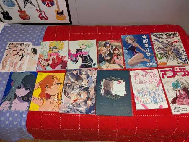 Foto 1-2: la sagra degli artbook, mega-pacco dal Giappome colmo di goodies del comiket 107, davvero un sacco di roba interessate, più qualche recupero artbook: notare Violet Evergarden e l’ultimo artbook di Redjuice. Non mi dilungo troppo, ma sto comiket è stata una cuccagna sia in senso di uscite che di soldi.